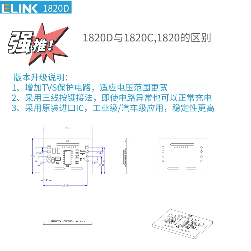 EL_YKQ1820D是一款用于新能源車充電槍的無線控制模塊,可解鎖特斯拉車型的充電蓋板。